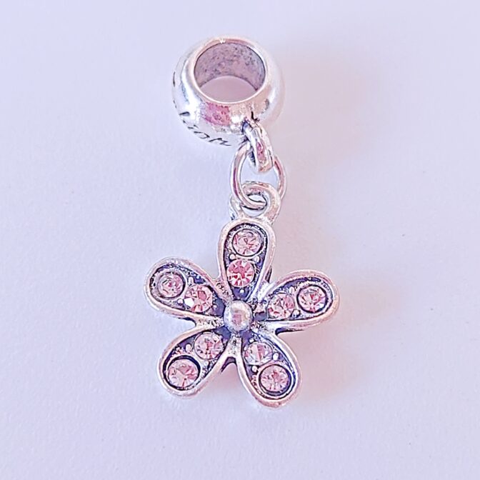 ●シルバー色の花モチーフにラインストーンがキラリと光るシューレースチャームです。