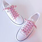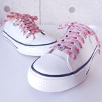 ●かわいいピンクも落ち着いた色味、やわらかいベージュ地と合わさって大人っぽい愛らしさのあるシューレースです。スカートなど女の子っぽいファッションに合いそうです。