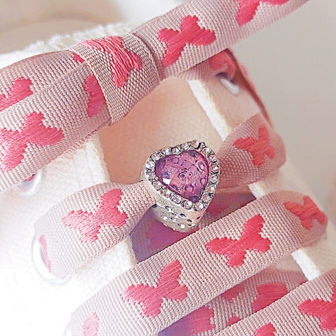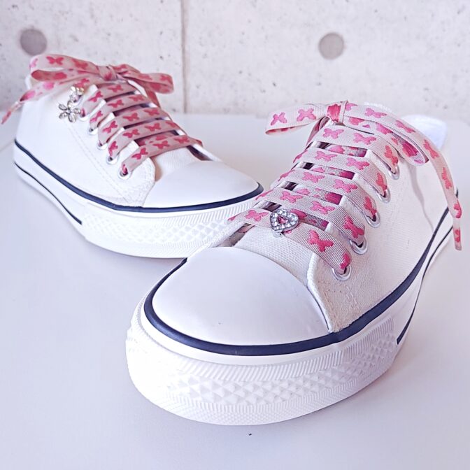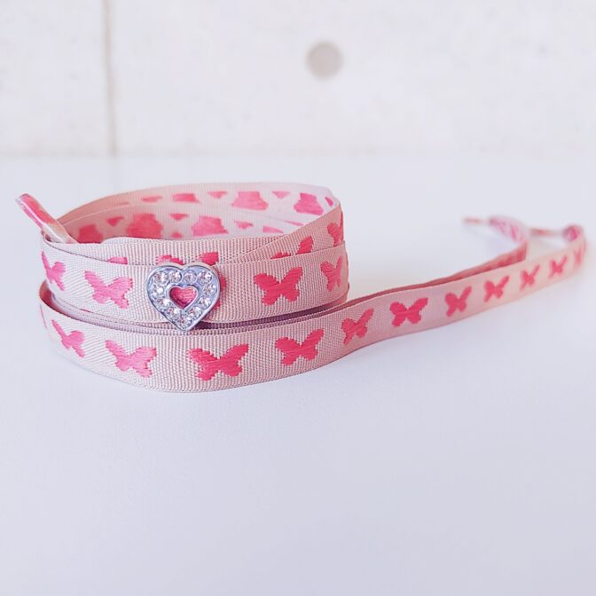 ちょうちょシルエット モーブピンク ハートチャーム付き (リボンシューレース)