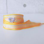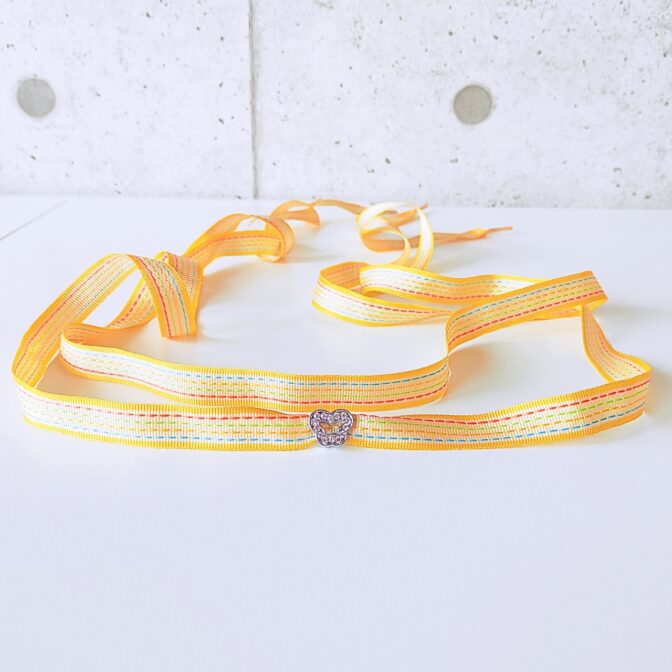 ●キャンディー包みみたいな明るい色のリボンをシューレースにしました。黄色の縁取りに、水色、イエロー、黄緑、オレンジのステッチが入っています♪