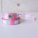 チャーム付シューレース /Handmade暖色系ストライプ・ラインチェック柄