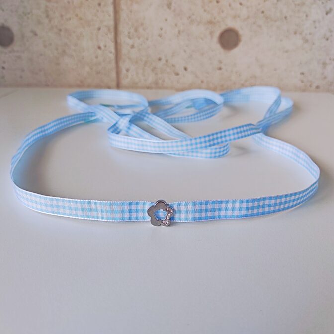 ギンガムチェック 水色 フラワーチャーム付き (リボンシューレース)