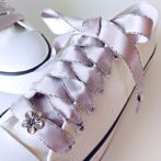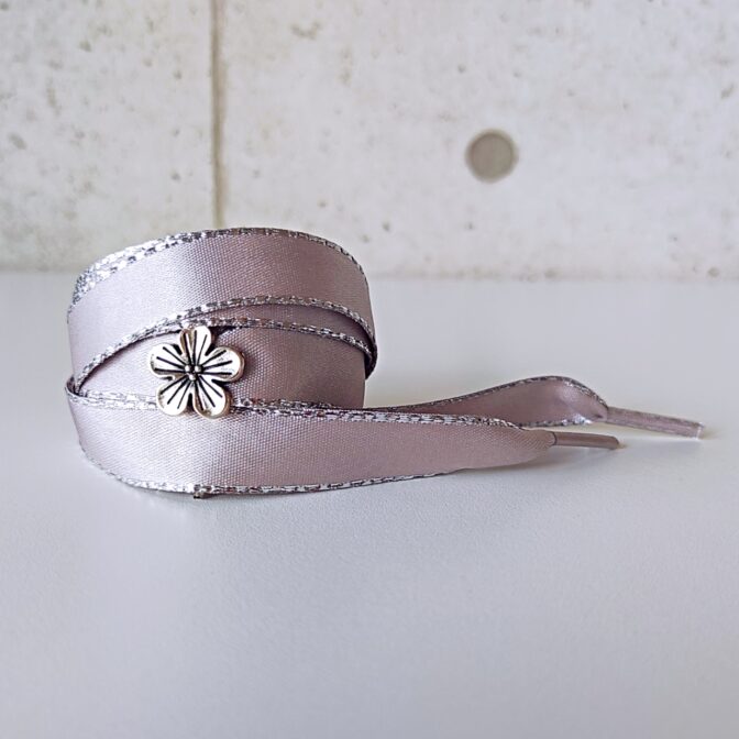 シャイニーサテン SilverGrey! シルバー色花チャーム付き (リボンシューレース)