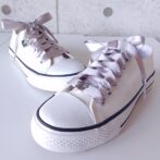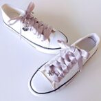 ●程よい光沢のきれいなシルバーグレーに、シルバ―色のトリミングをほどこしたサテンリボンでつくったシューレースです♪