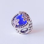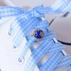 ●品があり優雅な青のジュエリーチャームにシルバーの花をあしらった可憐なデザインのシューレースチャームです。
