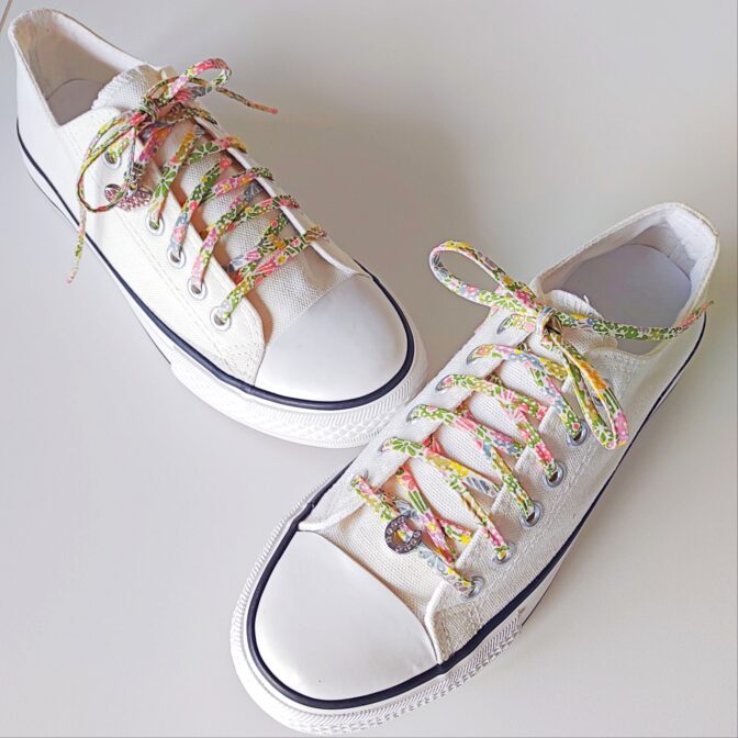 ●淡い色の草花柄がナチュラルでやわらかい雰囲気の靴紐です。