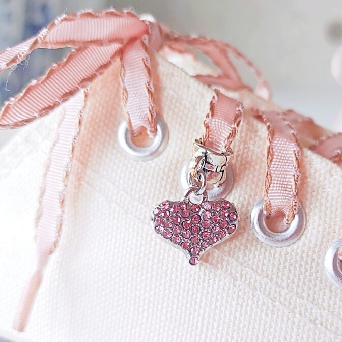 ●ピンクのラインストーンをはめ込んだハートシェイプのシューレースチャーム♡