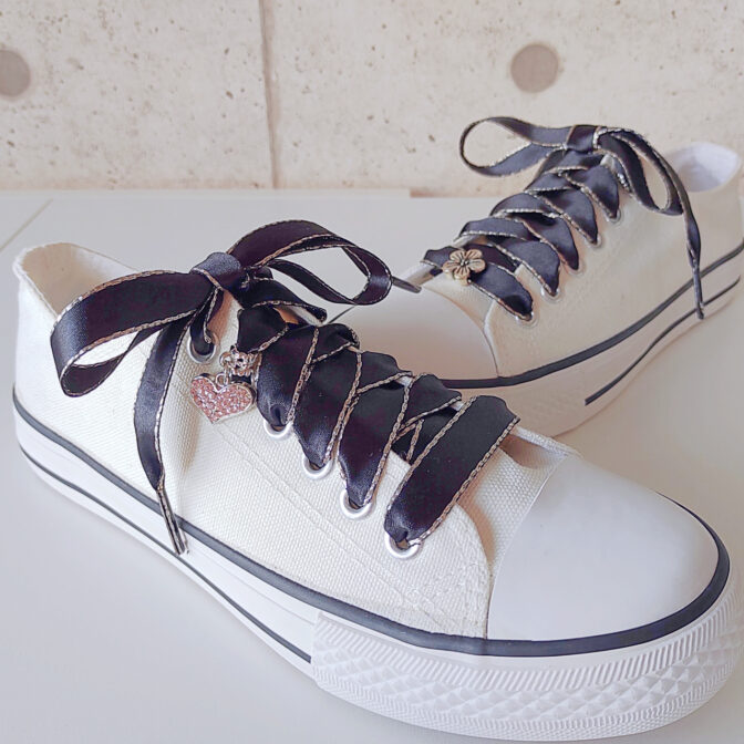 いつものスニーカーを個性溢れる靴紐(シューレース)とチャームで自分好みにカスタマイズしませんか?かわいい、ポップ、クール、クラシック、綺麗め、など様々なスタイルに対応可能な色と柄のバリエーションで、既製品にはないデザインとアクセントをプラスできます。コーディネートの幅を広げたい方やおしゃれを楽しみたい方におすすめです。