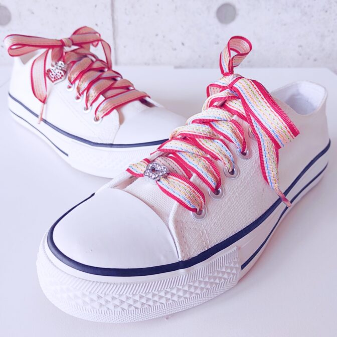 いつものスニーカーを個性溢れる靴紐(シューレース)とチャームで自分好みにカスタマイズしませんか?かわいい、ポップ、クール、クラシック、綺麗め、など様々なスタイルに対応可能な色と柄のバリエーションで、既製品にはないデザインとアクセントをプラスできます。コーディネートの幅を広げたい方やおしゃれを楽しみたい方におすすめです。