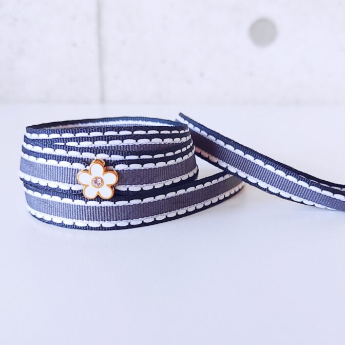 レディシックグレー 白エナメルのフラワーチャーム付き (リボンシューレース)