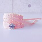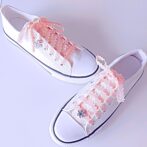 ●桜色に極々淡い萌黄色のピコット付きのリボンでつくったシューレースです♪