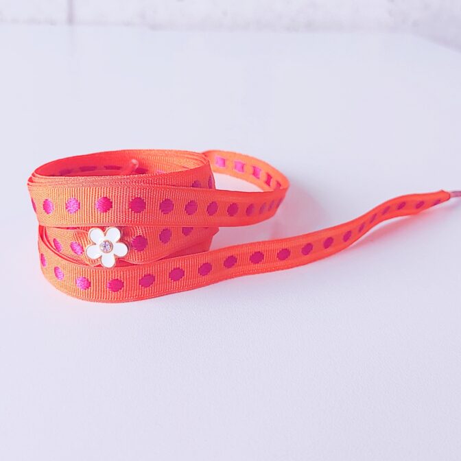 水玉オレンジ 白エナメルのフラワーチャーム付き (リボンシューレース)