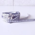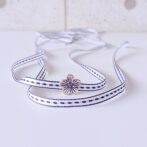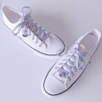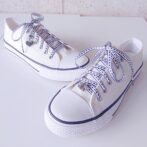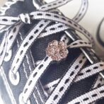 White & Black シルバー色花チャーム付き (リボンシューレース)