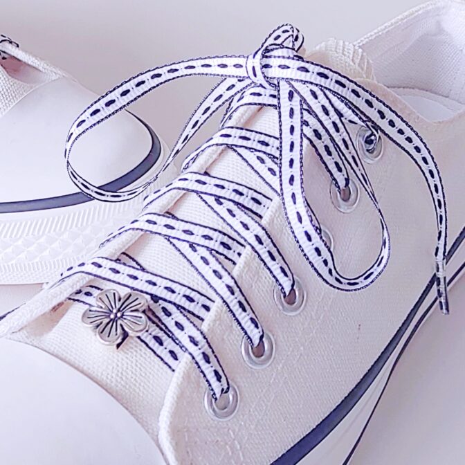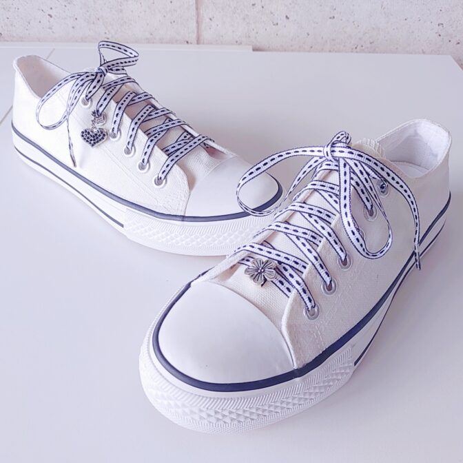 ●細めのリボンにモノトーンカラーが繊細でおしゃれでかわいい。合わせやすい色合いでもスニーカーファッションに違いを出せそうなシューレースです♪