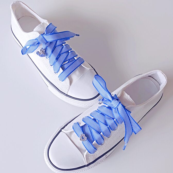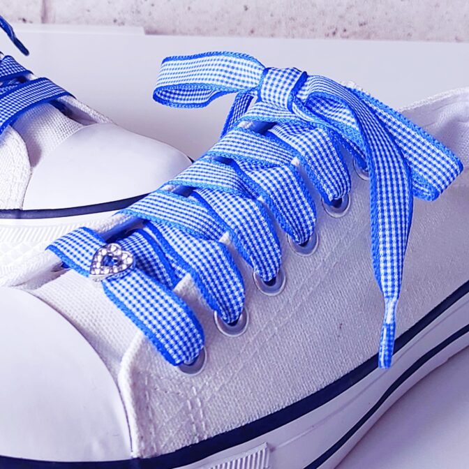 ●ブルーのチェックのリボンでつくった靴紐です♪
